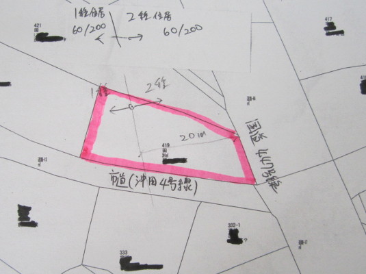 備考  5条申請必要です。下水道負担金必要です。上水道は、前面道路にきています。現況引き渡しです。